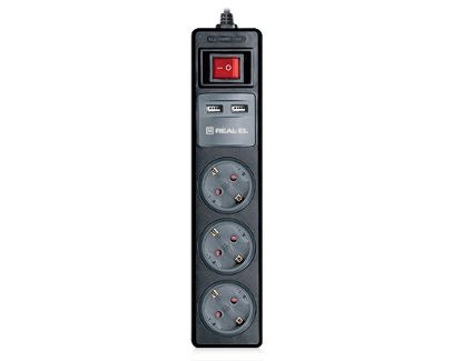 Мережевий подовжувач REAL-EL RS-3 USB CHARGE 1.8m, black (EL122500001)