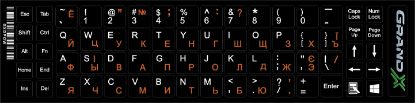 Наліпка на клавіатуру Grand-X 68 keys Cyrillic orange, Latin white (GXDPOW)